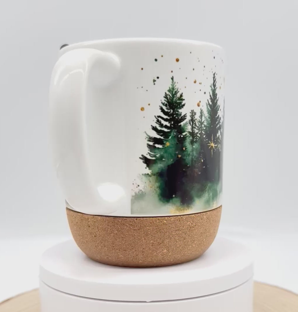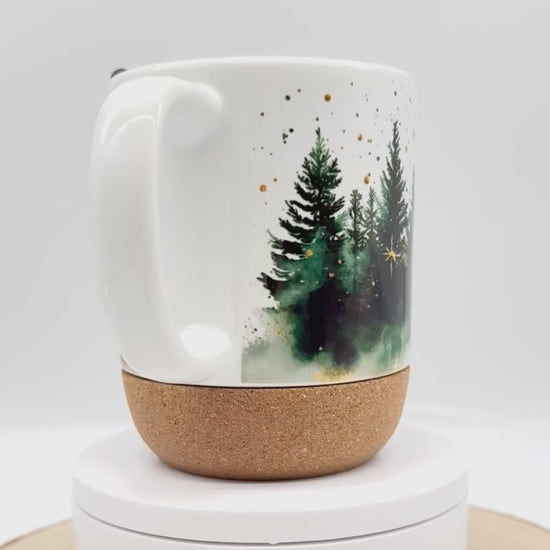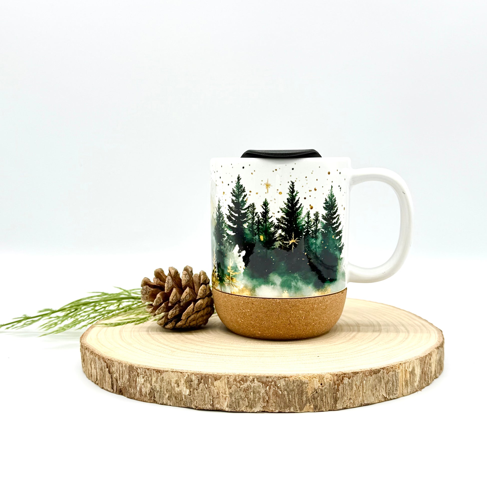 12oz Christmas Forest Coffee Mug with Cork Base and Plastic Lid