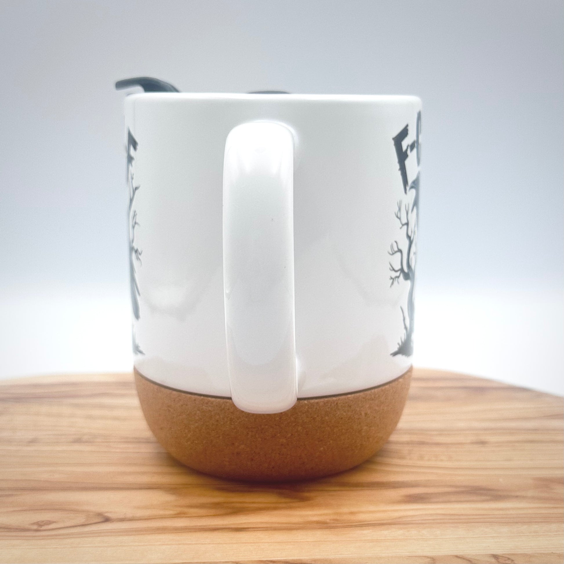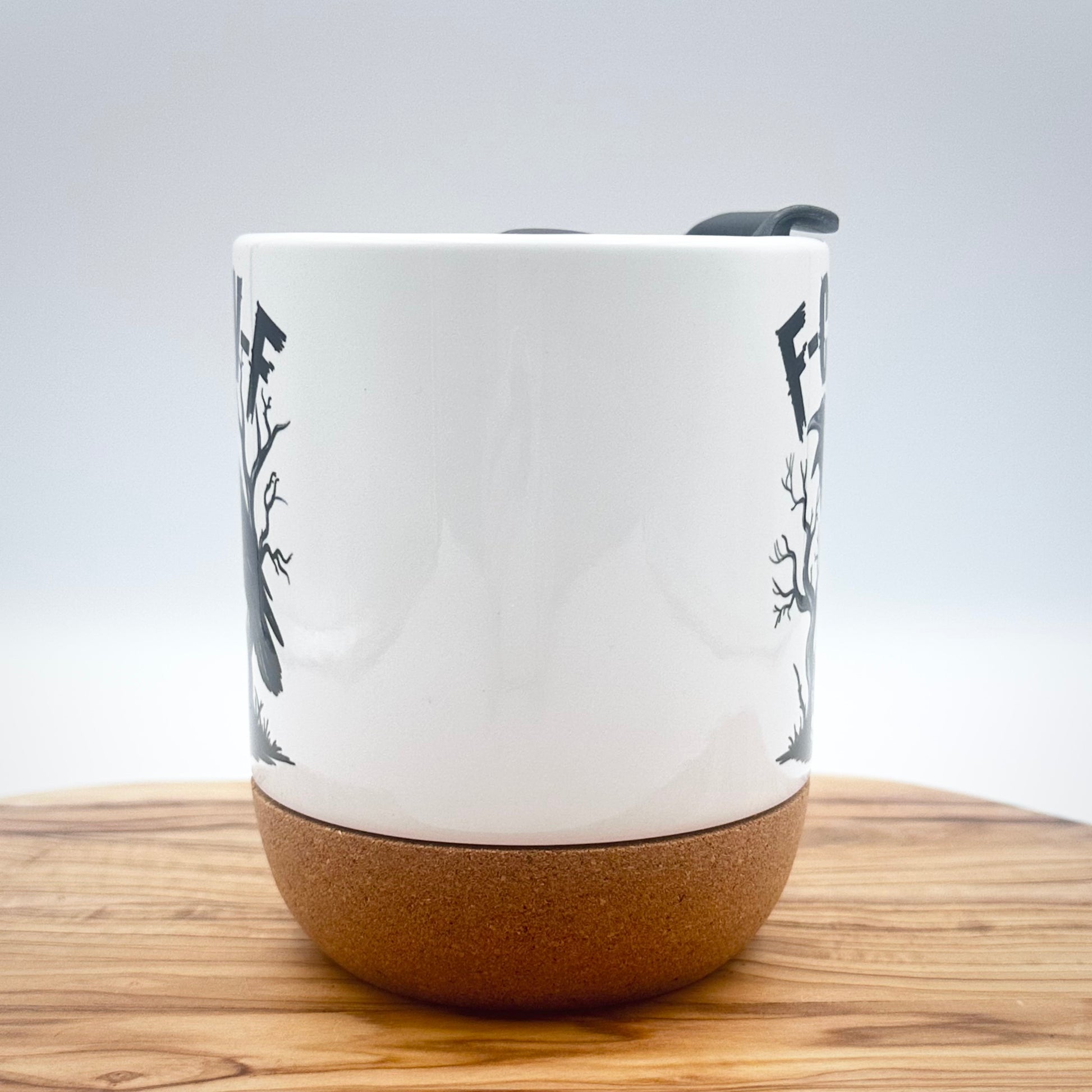 15oz Raven Skull Coffee Mug with Cork Bottom and Lid