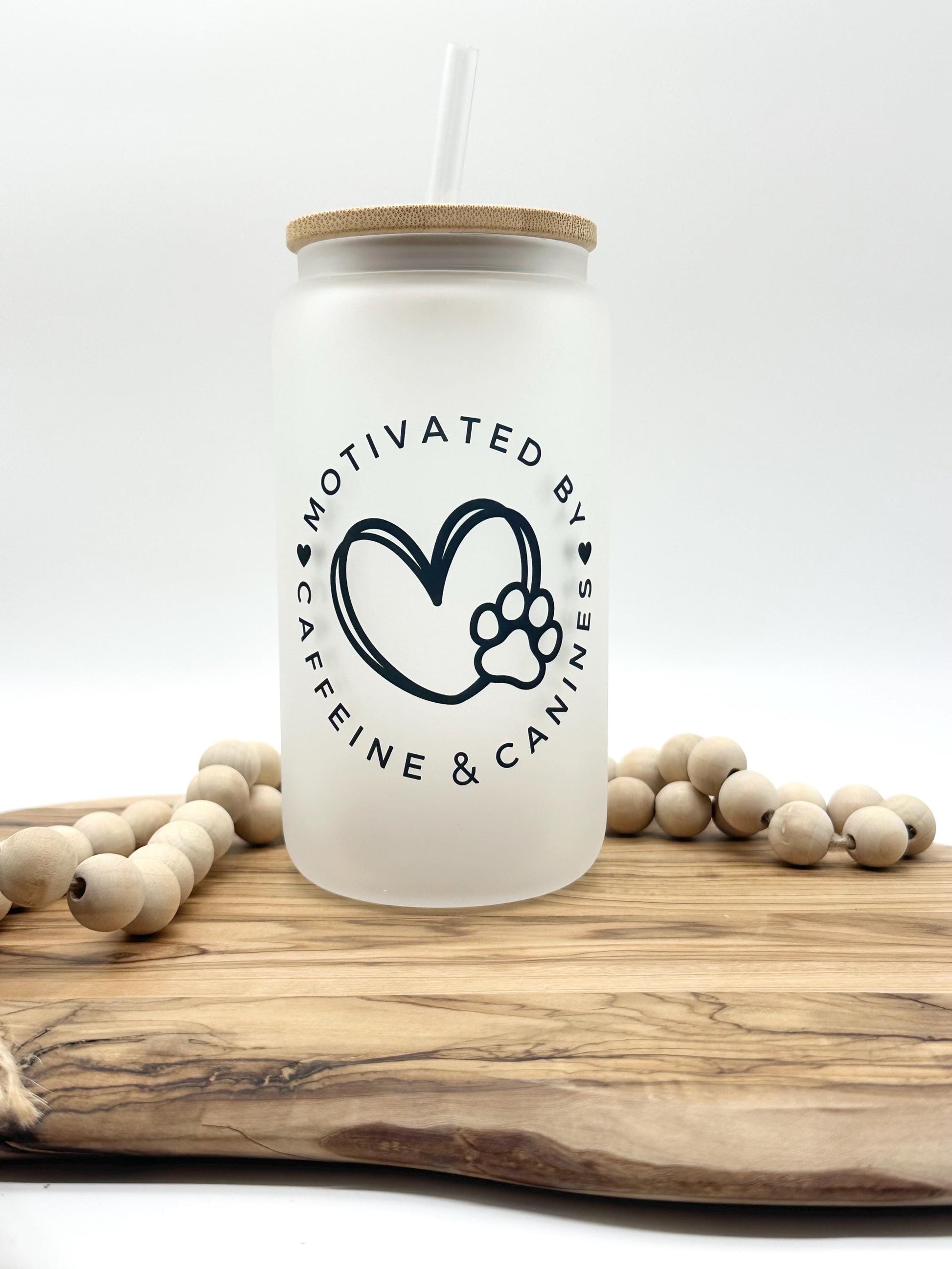 16oz Dog Lover Frosted Glass Tumbler - Iced Coffee Cup with Lid and Straw
