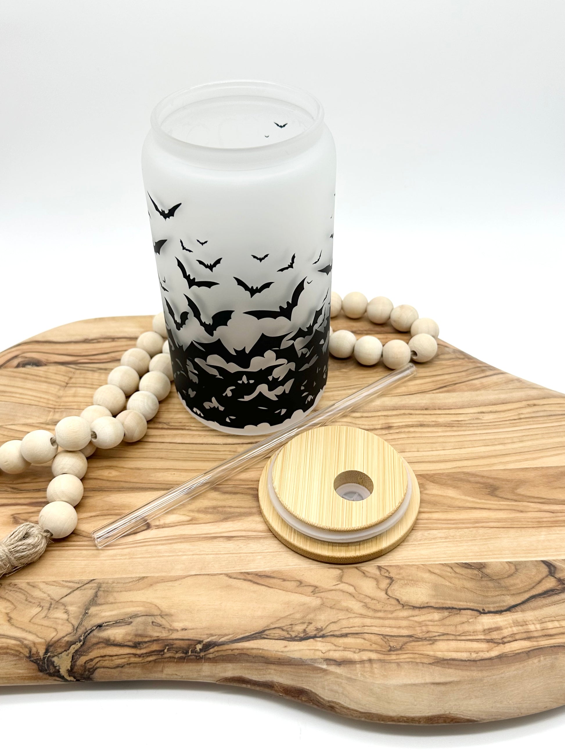 The frosted glass gives a unique touch, while the bat design adds a touch of Halloween fun to your drinkware collection. The bamboo lid and straw make it easy to take your drink on the go, and they're eco-friendly too!