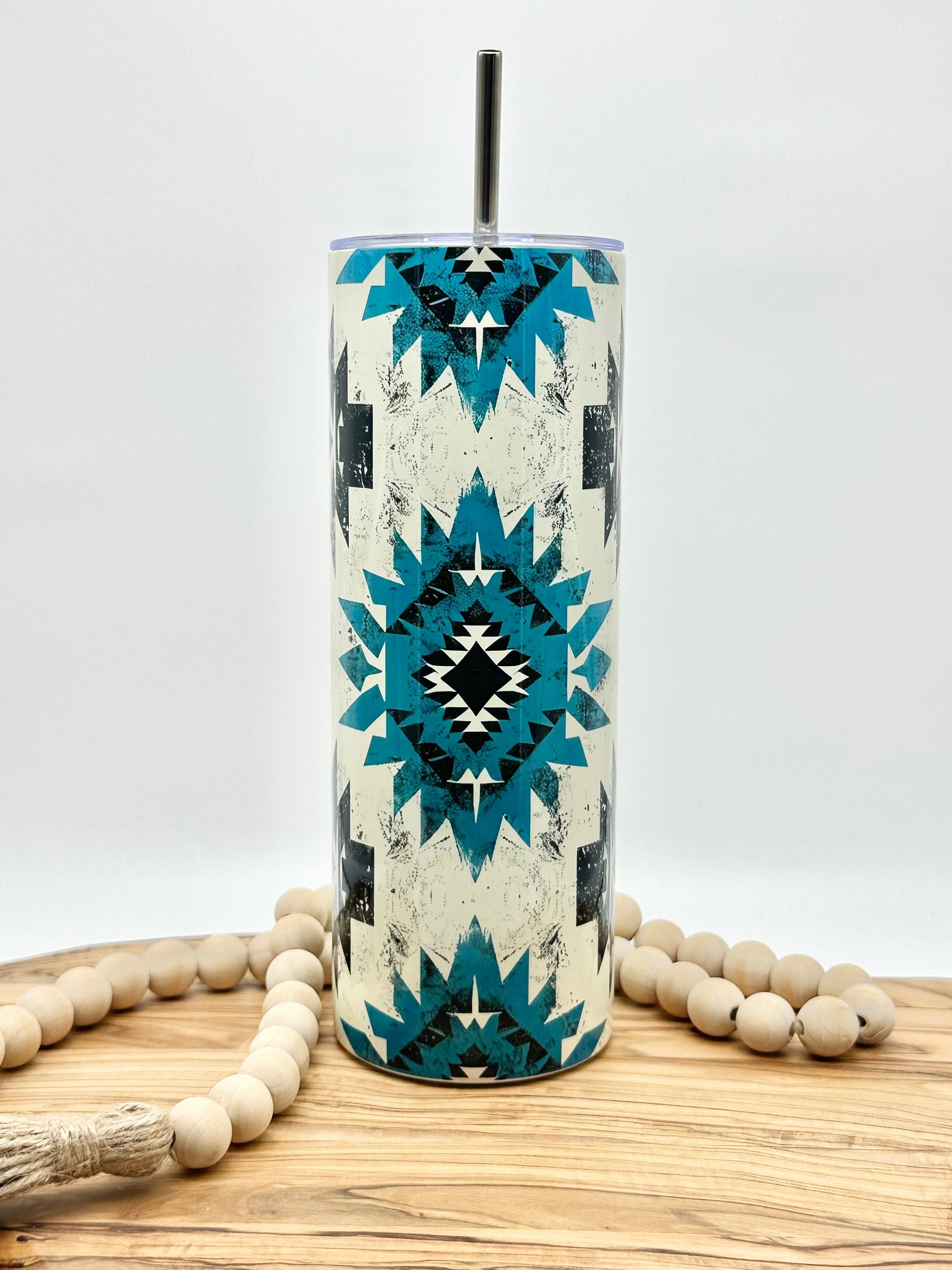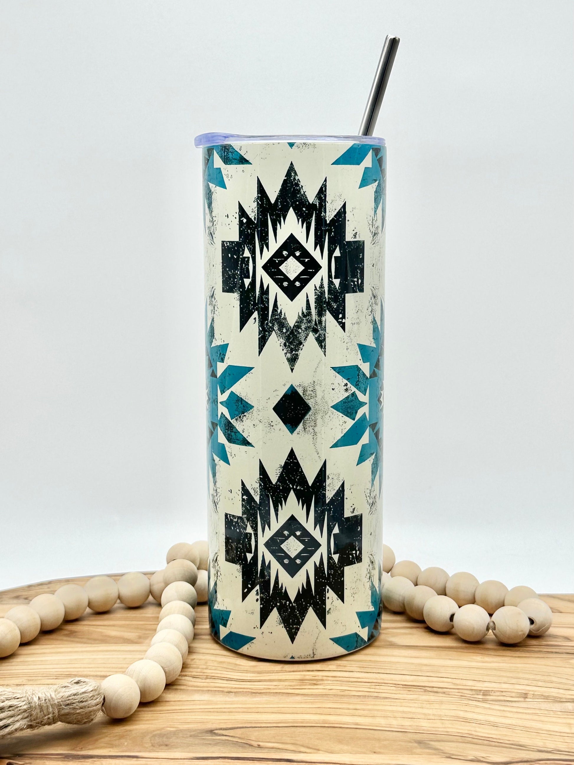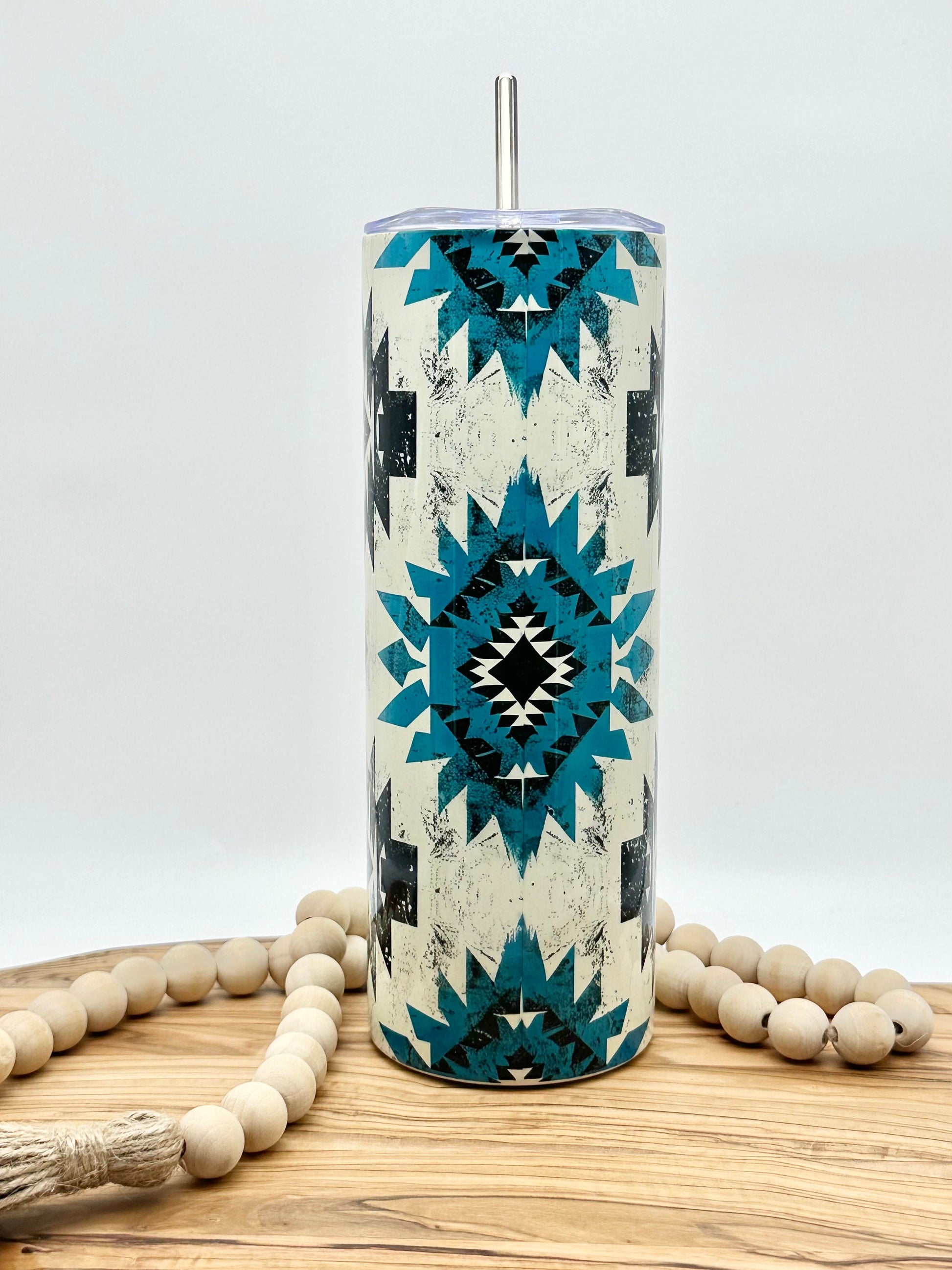 This 20oz stainless steel tumbler with Aztec pattern is a great way to enjoy your favorite hot or cold beverages. It will keep your drinks cold for 12 hours or hot for 6 hours. This 20oz insulated stainless steel tumbler's image is added using sublimation, which means the design is permanently printed onto the tumbler and won't peel off over time. This is a great gift option, because this skinny tumbler can be personalized to include a name if desired.