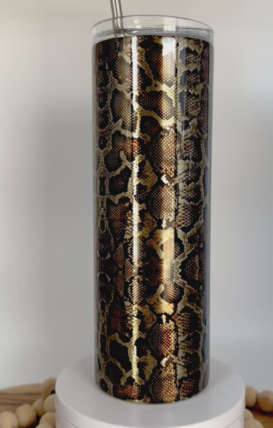This snakeskin stainless steel tumbler is a great way to enjoy your favorite hot or cold beverages, and will keep them at the perfect temperature for hours. It has a capacity of 20 fluid ounces, and it’s slim shape makes it suitable for most car cupholders