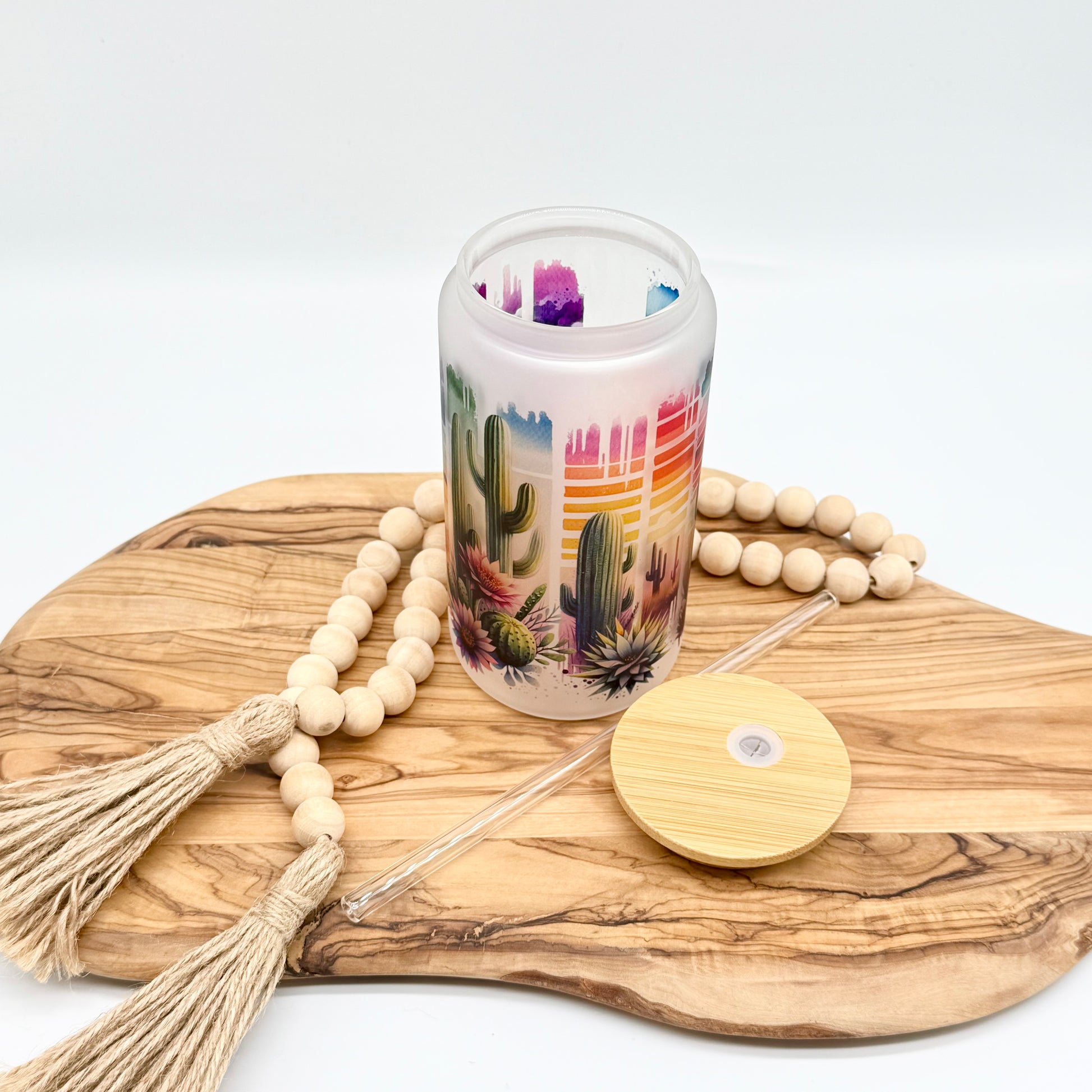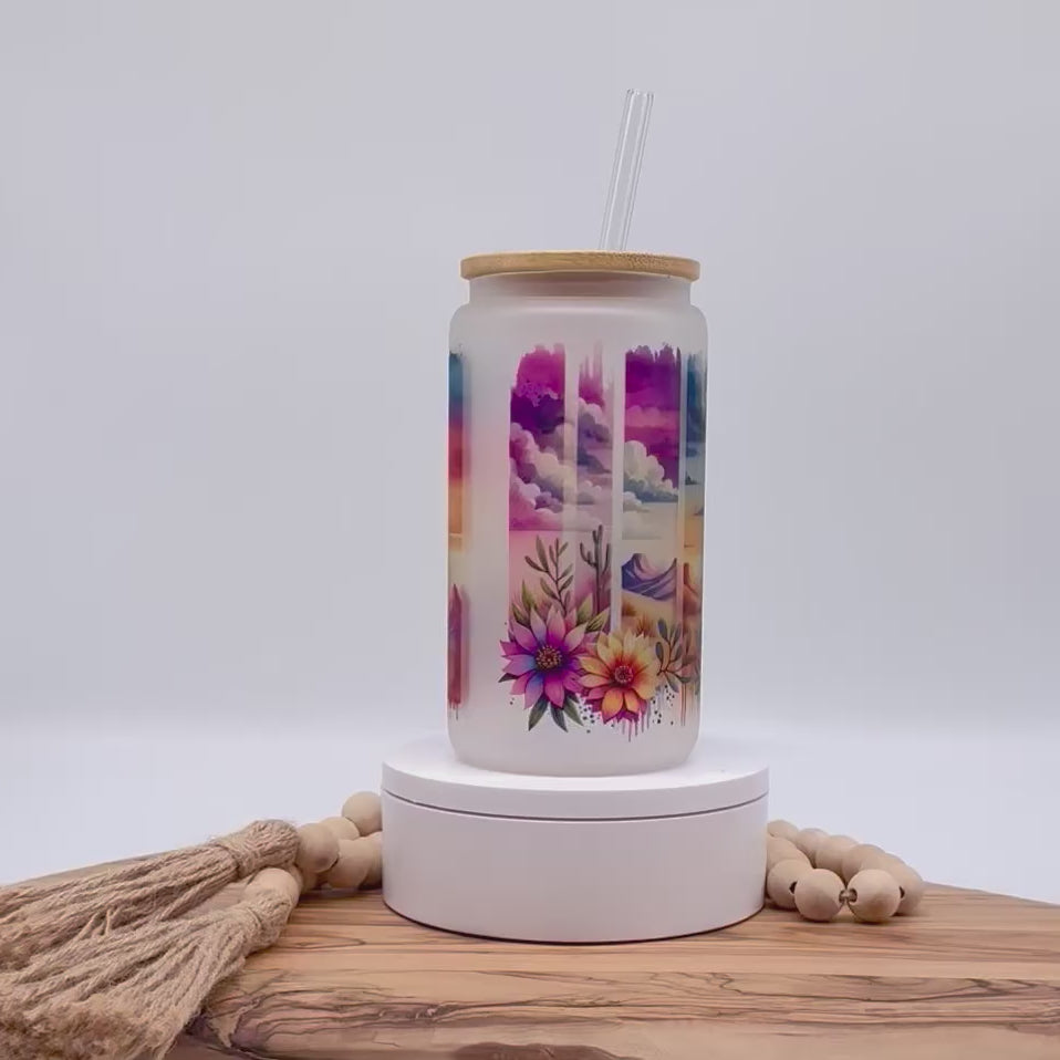 Cactus Iced Coffee Cup- 16oz Frosted Glass Tumbler with Lid and Straw