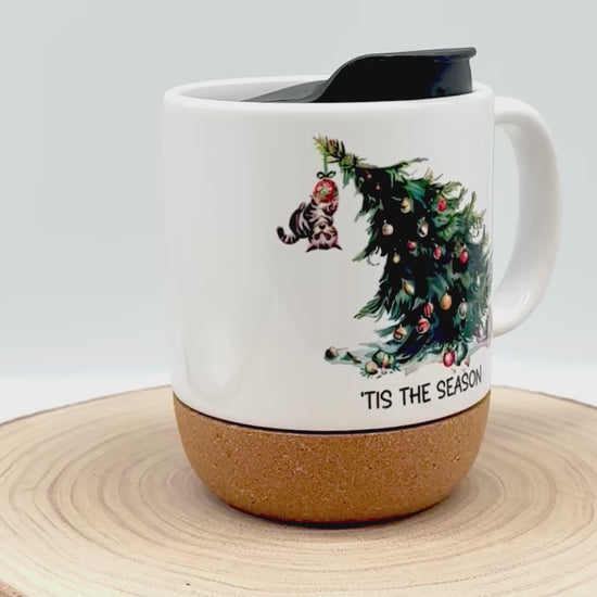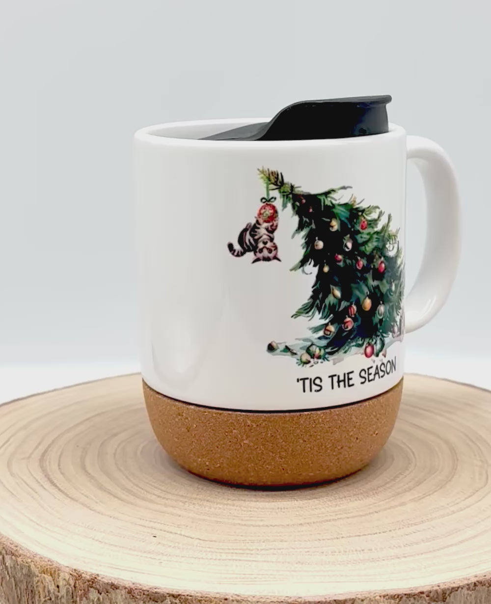 Funny Christmas Cat Mug - 12oz Coffee Mug with Cork Base