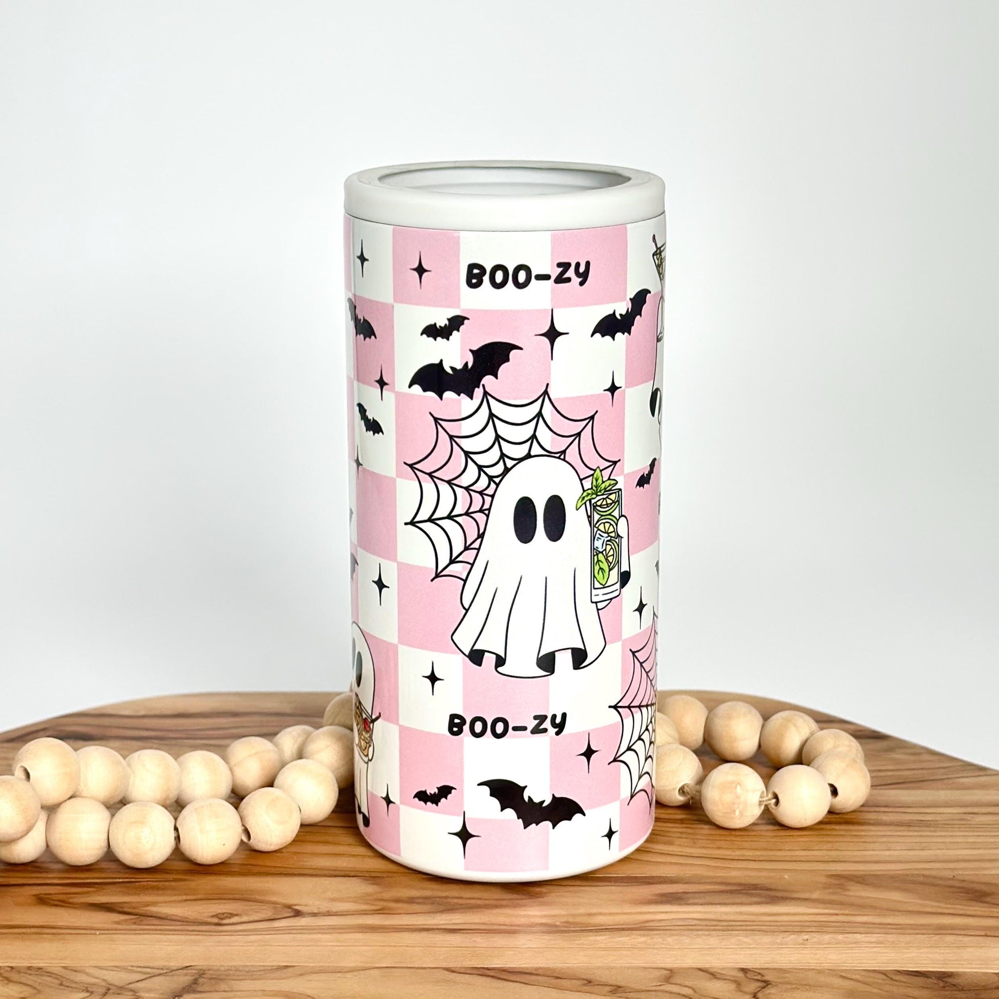 Keep your drinks cold this Halloween with this cute, ghost slim can cooler. This stainless steel double wall, vacuum insulated can cooler can accommodate:
