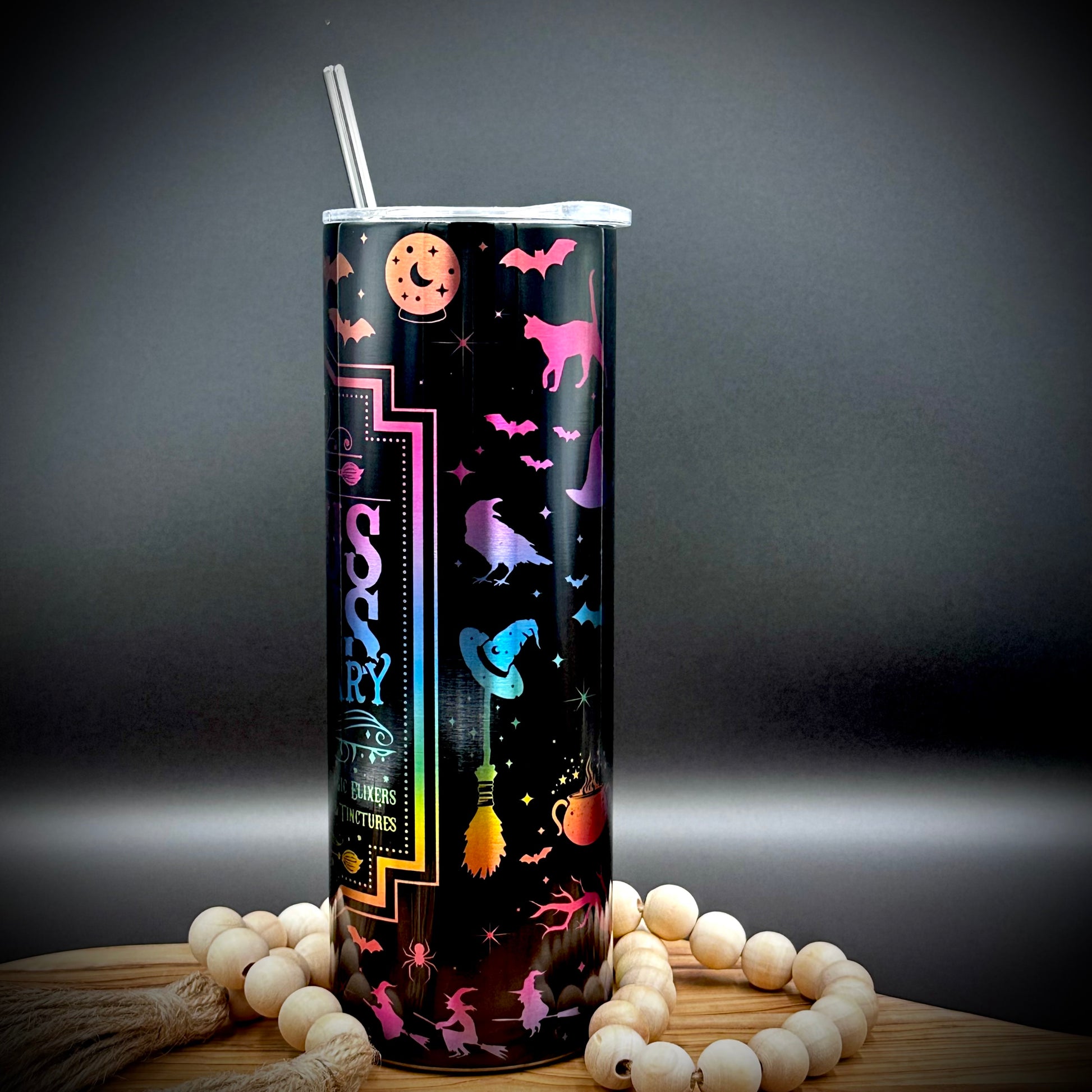 Halloween Hocus Pocus Apothercary Tumbler - 20oz Insulated Stainless Steel Cup with Lid and Straw