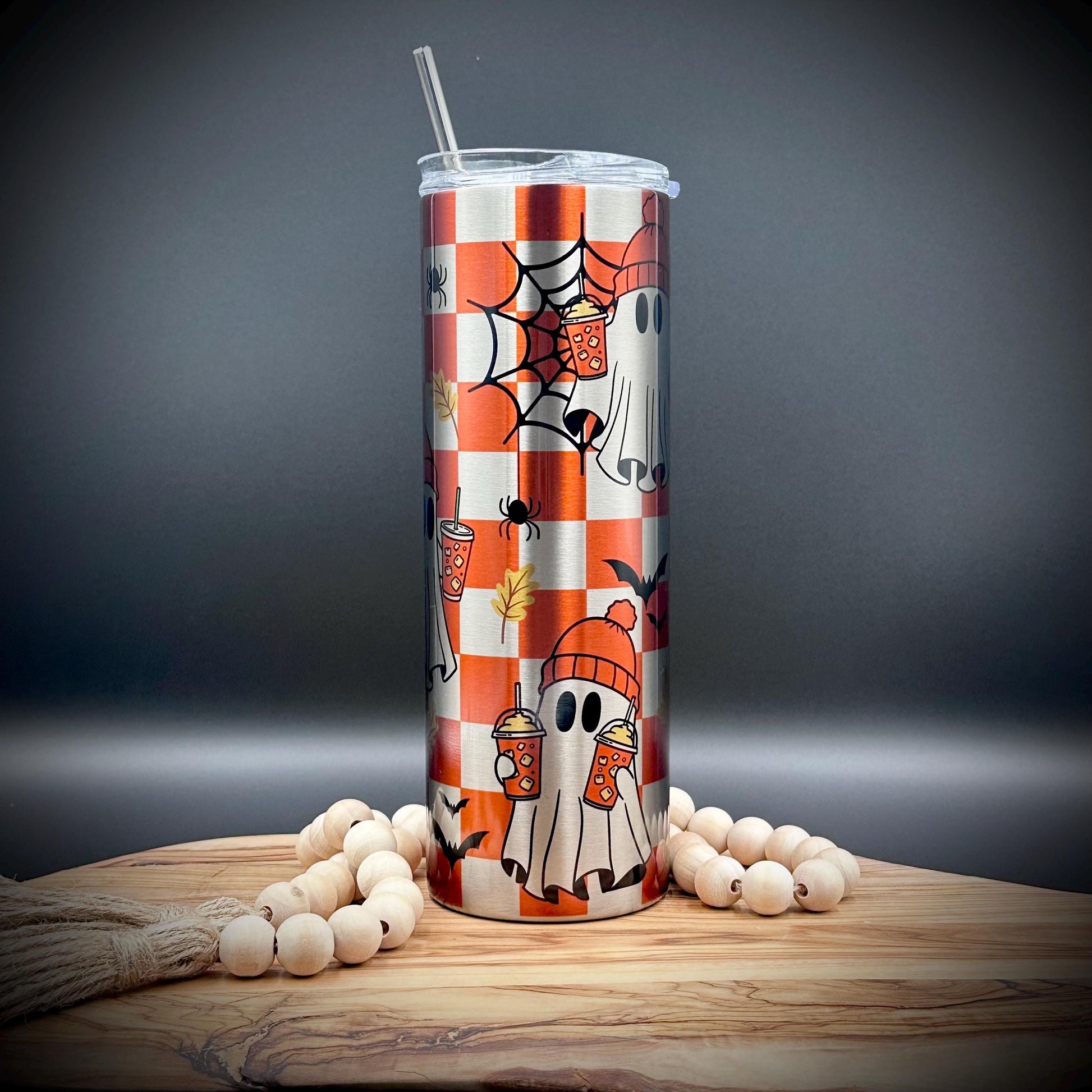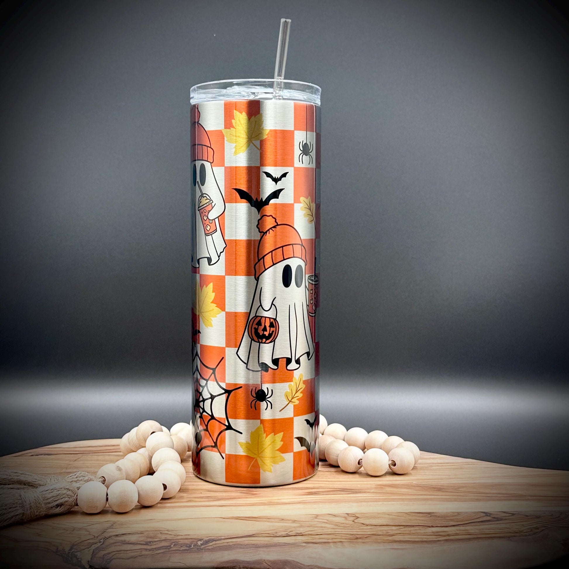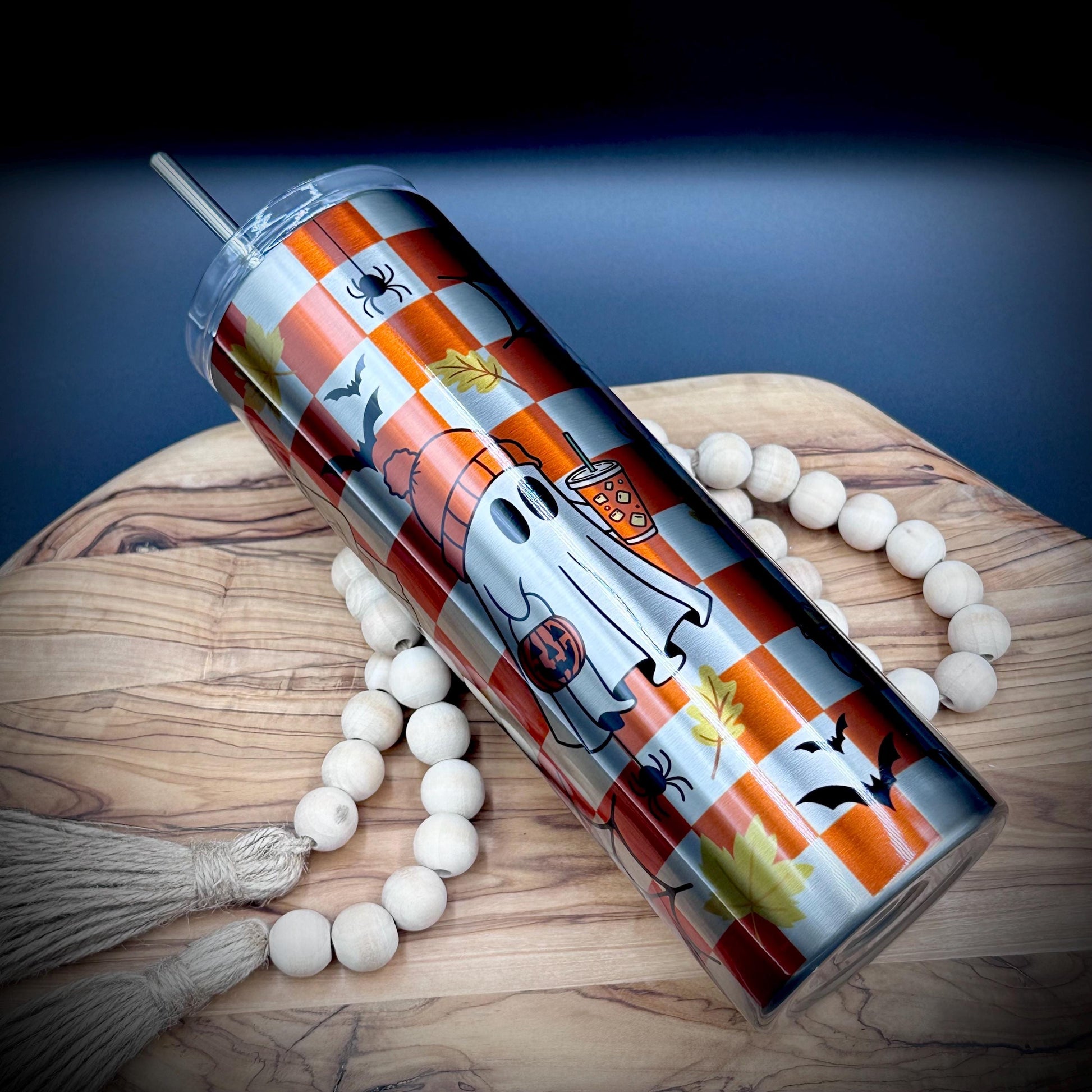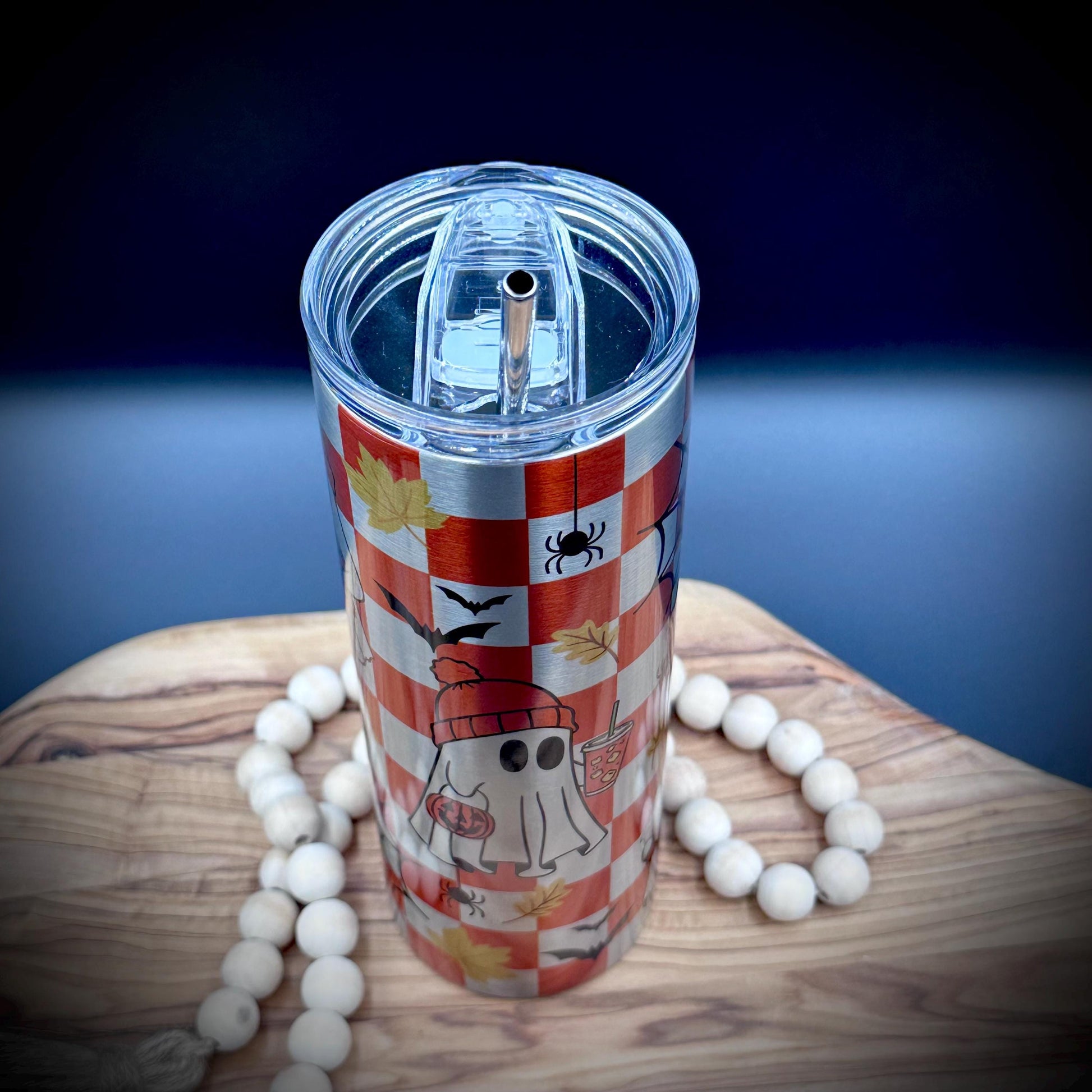 20oz Checkered Halloween Tumbler with Lid and Straw - Insulated Stainless Steel