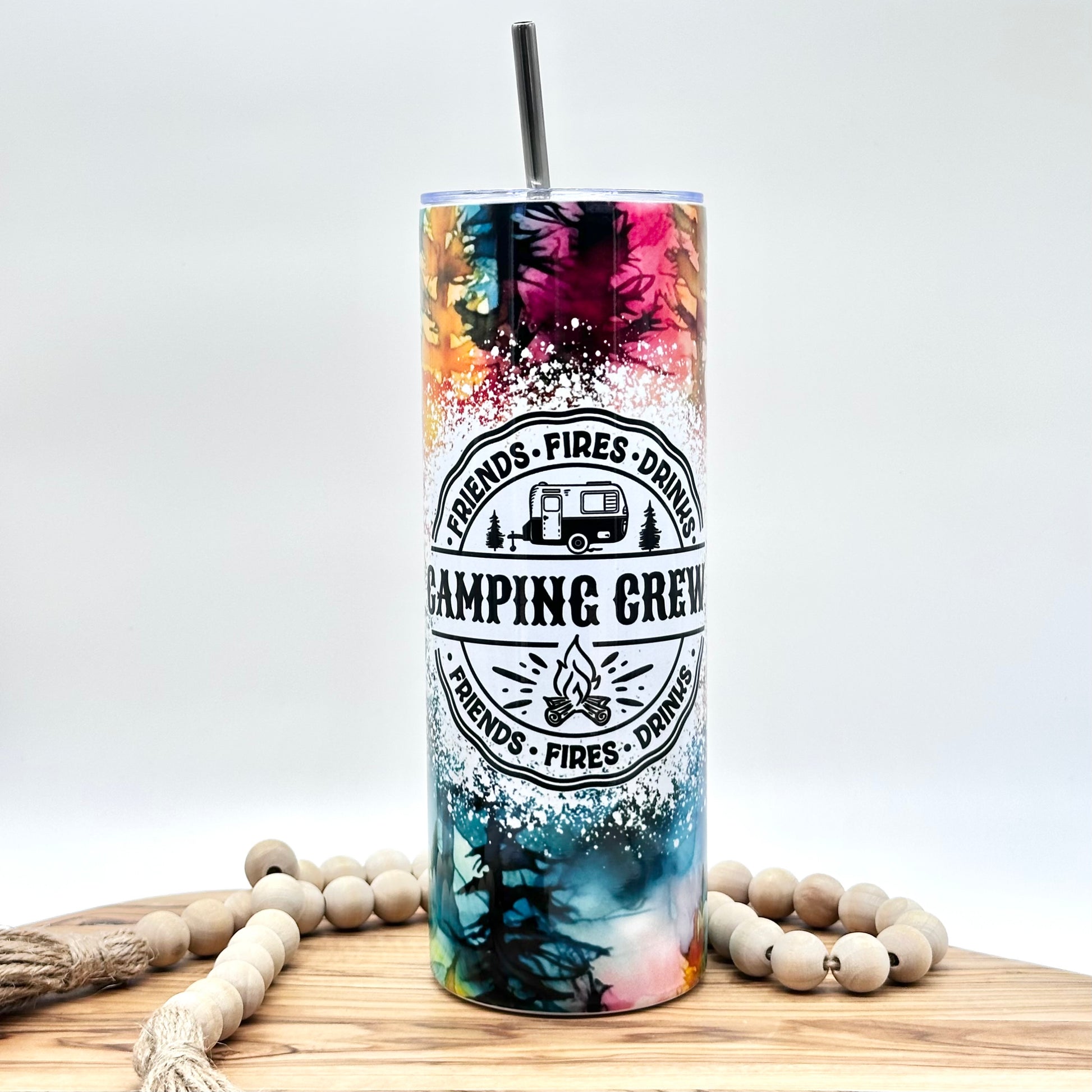 Keep your drinks hot or cold for hours with this camping themed stainless steel tumbler.