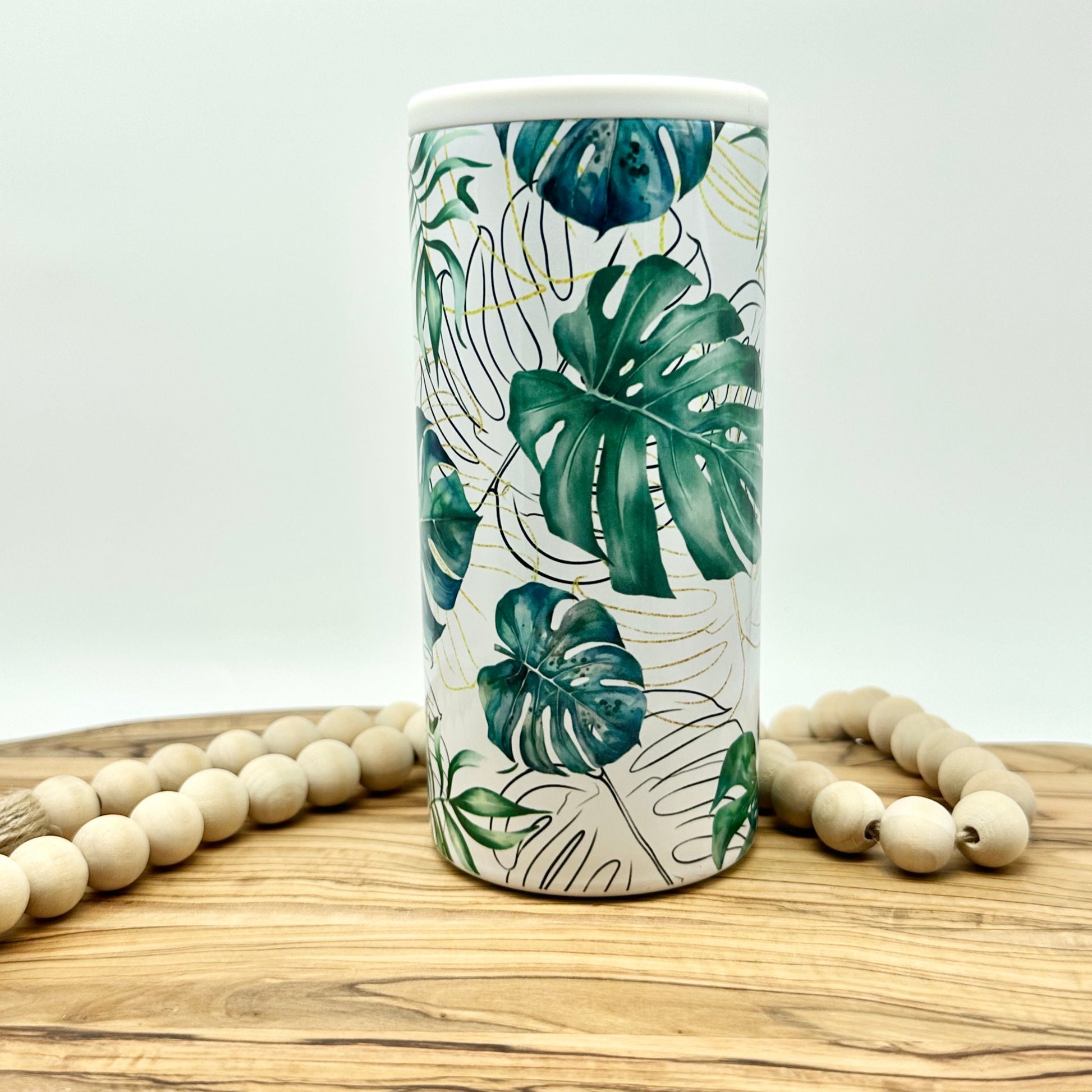 Keep your drinks cold this summer with this cute, monstera leaf slim can cooler. This stainless steel double wall, vacuum insulated can cooler can accommodate: