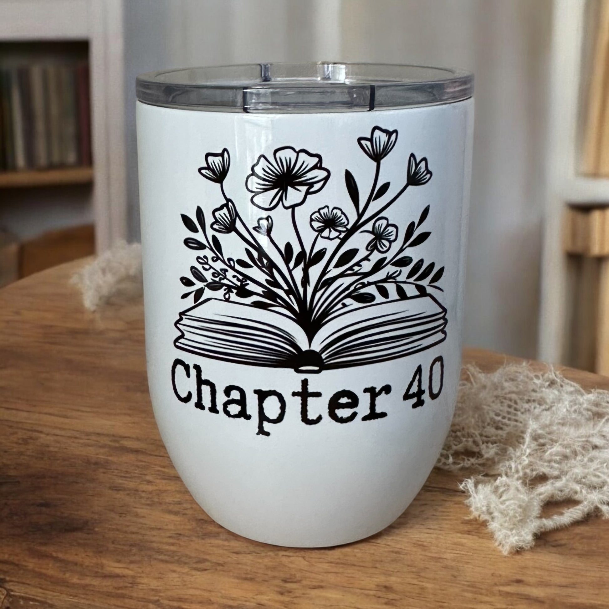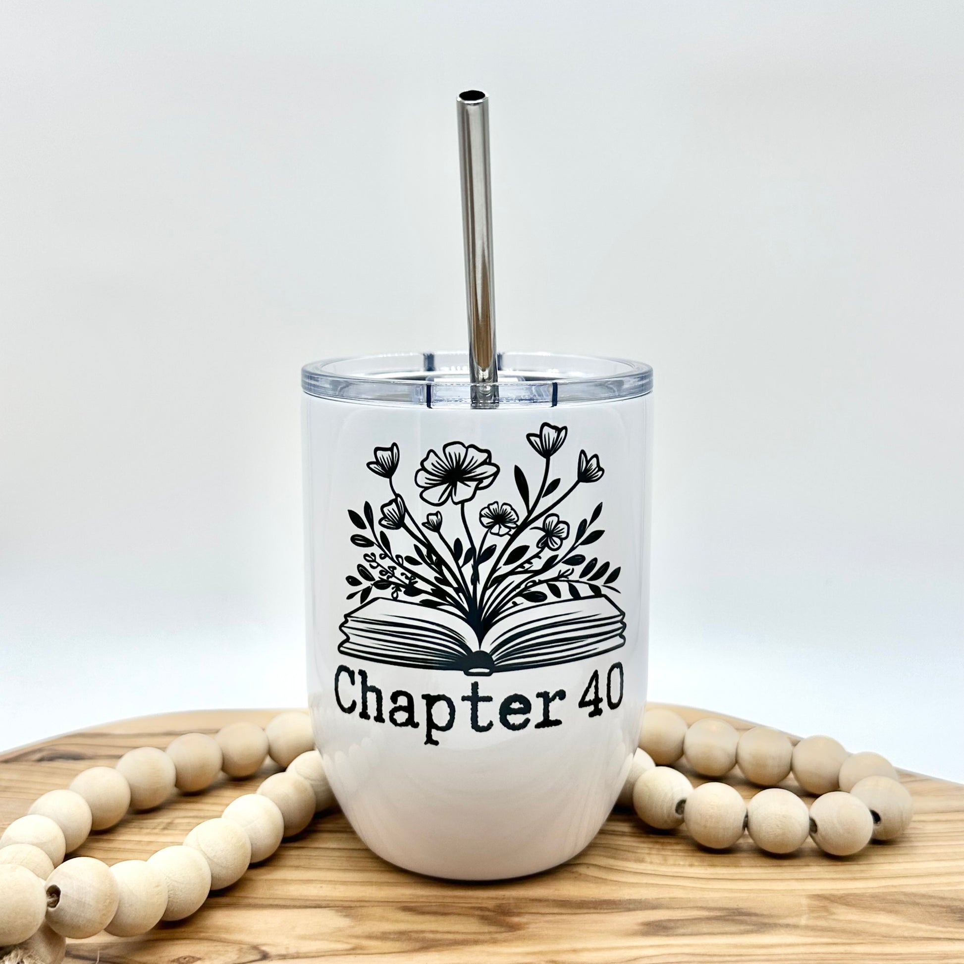 This 15oz insulated wine glass features a floral book graphic, making it the perfect way for book lovers to unwind. Designed with functionality in mind, it includes a plastic lid to prevent spills and a stainless steel straw for easy sipping. The insulated construction helps keep your drinks at the ideal temperature longer. Whether you're enjoying wine, cocktails, or any cold beverage, this tumbler is a playful yet practical addition to your drinkware collection. Perfect for book lovers or anyone looking to add some fun to their downtime. The number on the tumbler can be customized to any number of your choice or to a name.