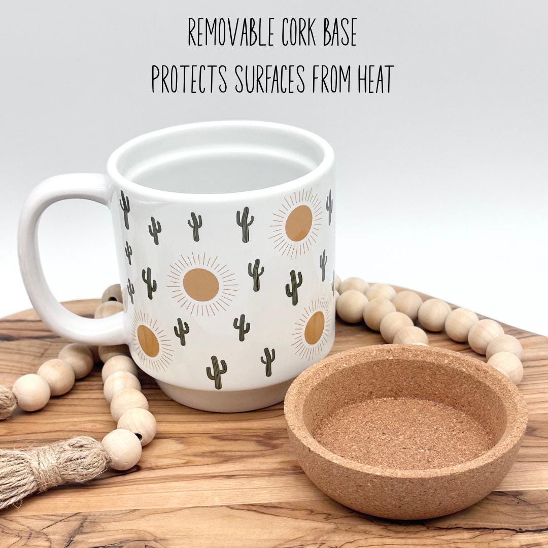 Cactus Coffee Mug with Cork Base and Plastic Lid, 12oz Ceramic Mug