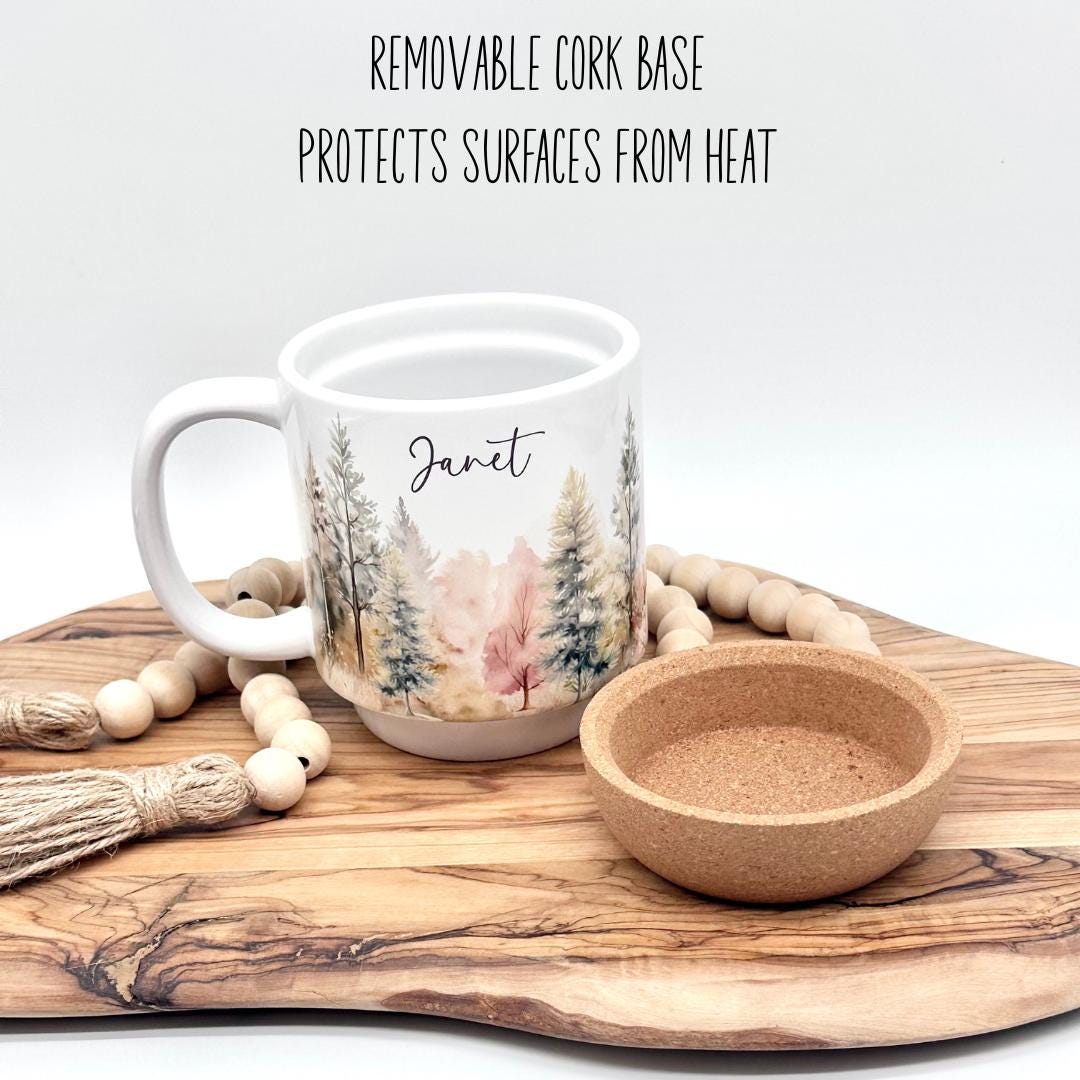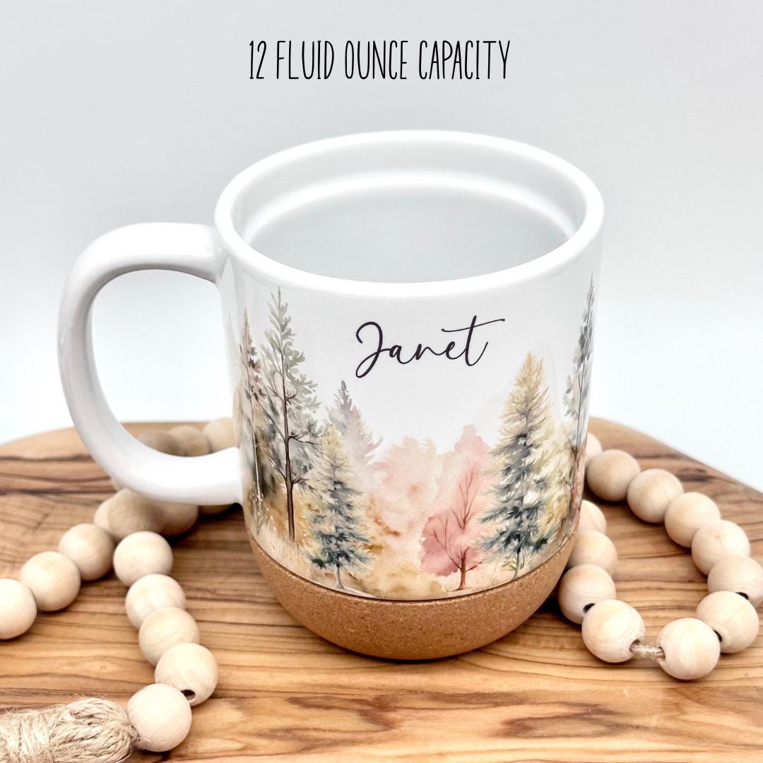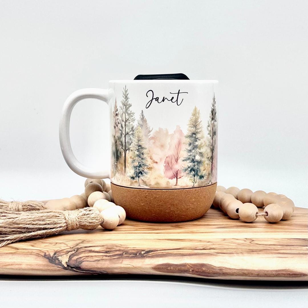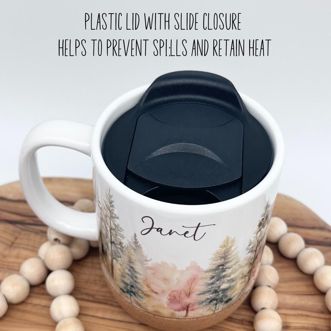 12oz Personalized Forest Coffee Mug with Cork Base and Plastic Lid