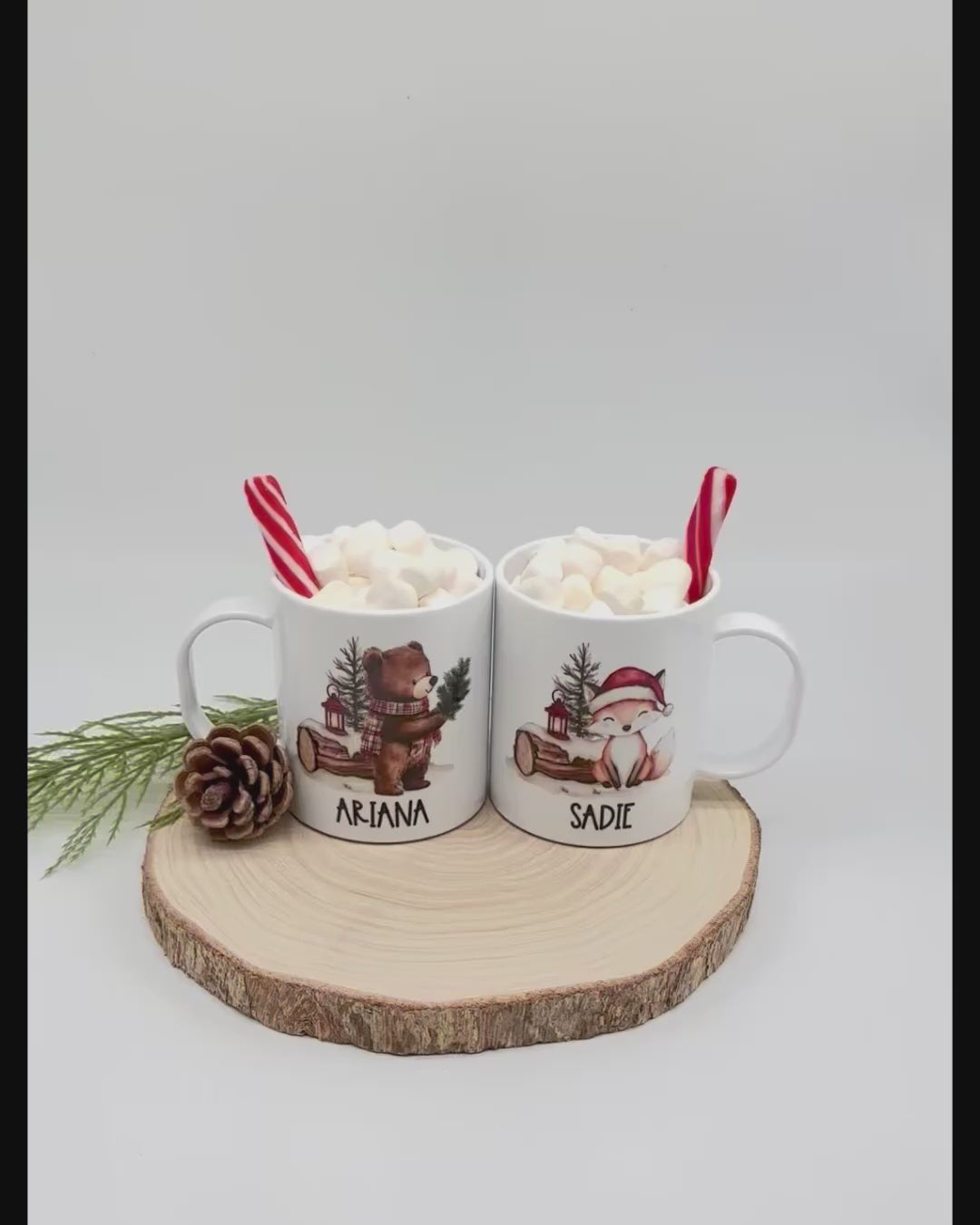Personalized Kids Christmas Mug – BPA-Free Plastic Cup with Cute Holiday Animals