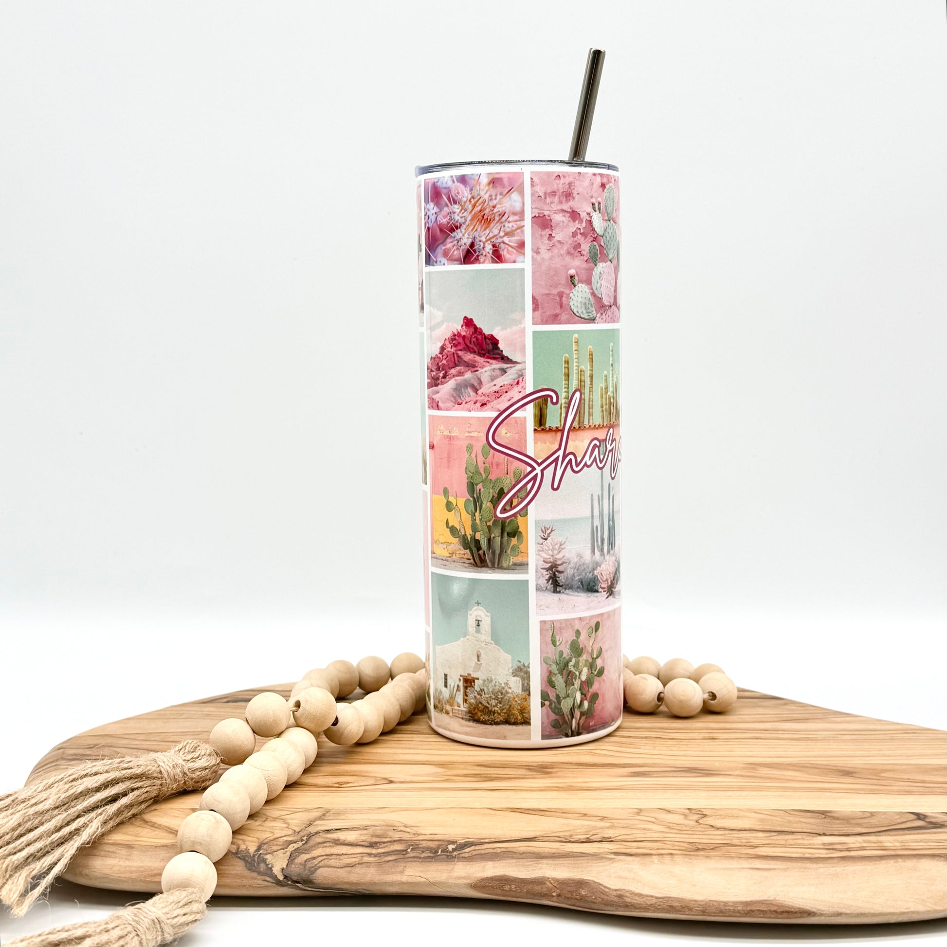 Personalized Southwestern Tumbler - 20oz Boho Chic Tumbler with Lid and Straw