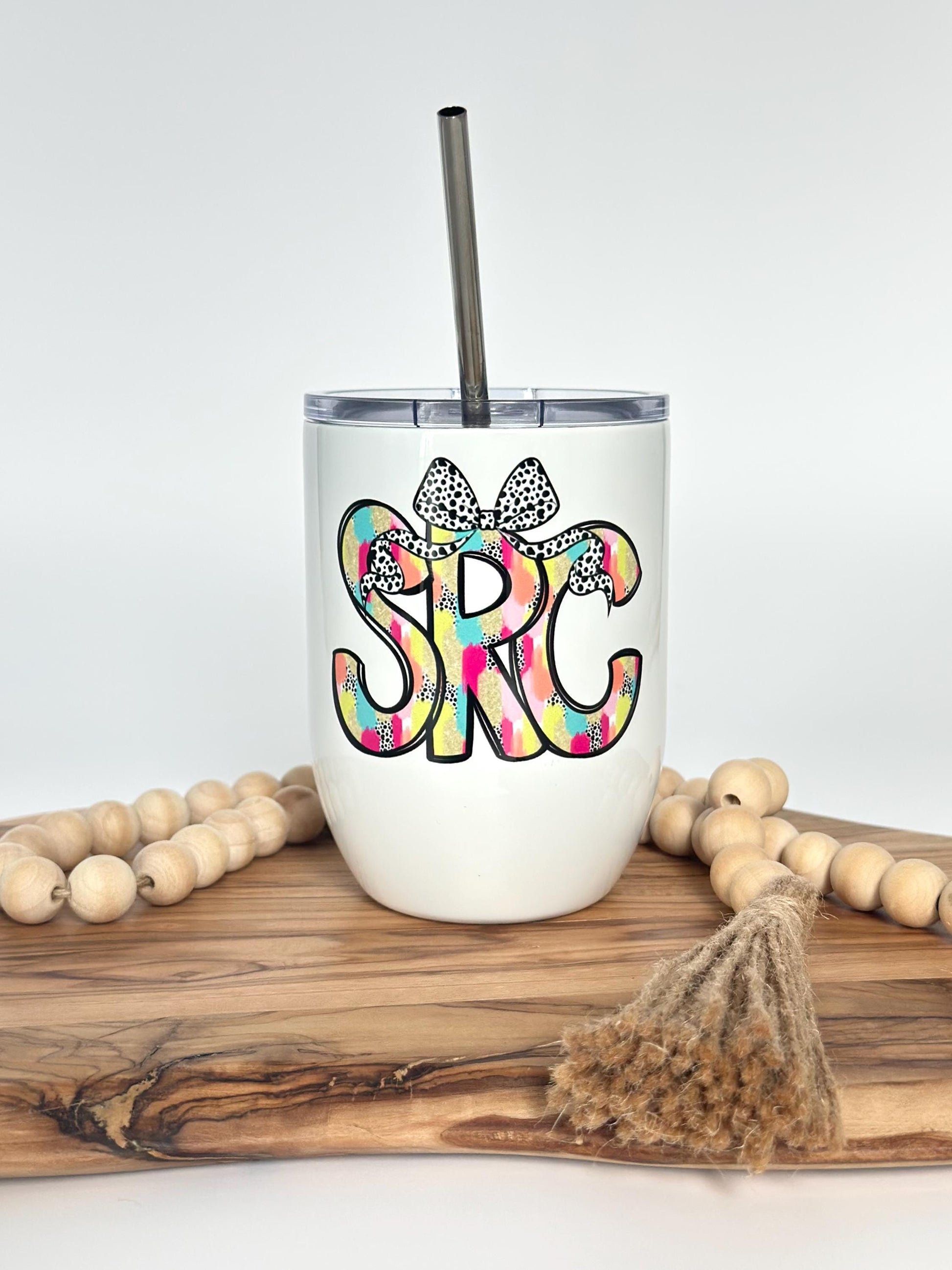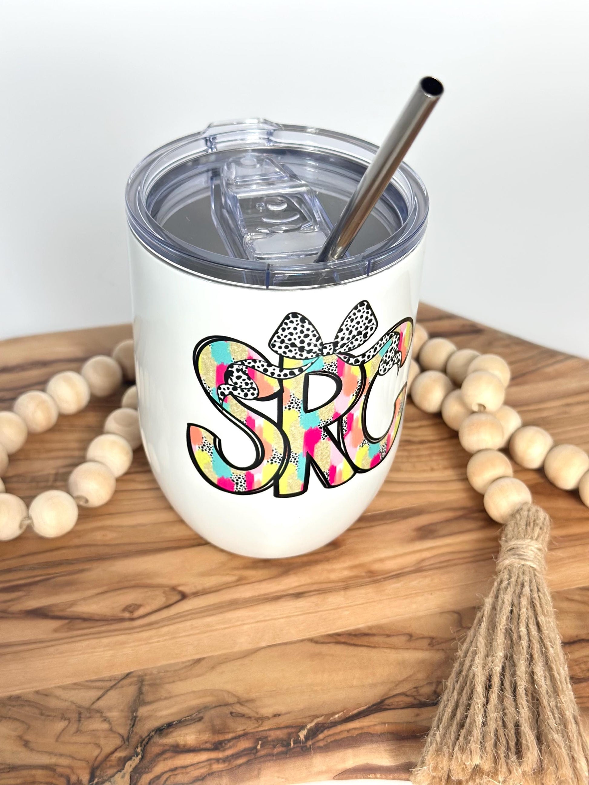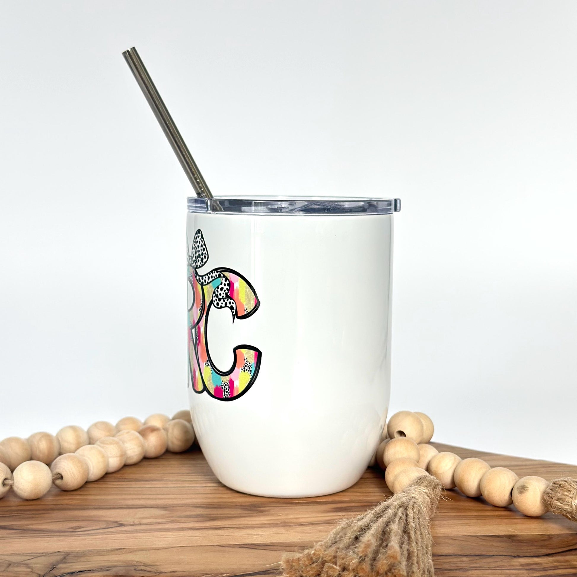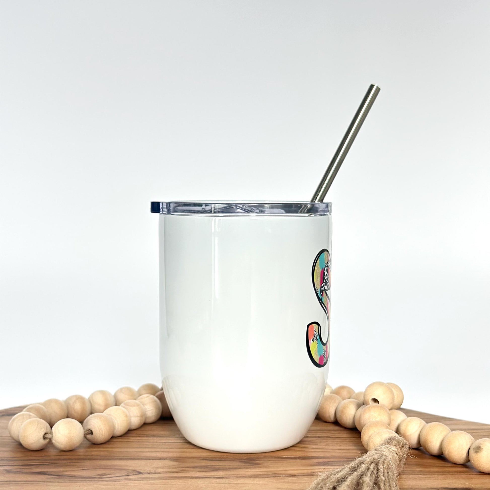 Personalized Wine Glass - 15oz Insulated Stainless Steel Tumbler with Lid and Straw