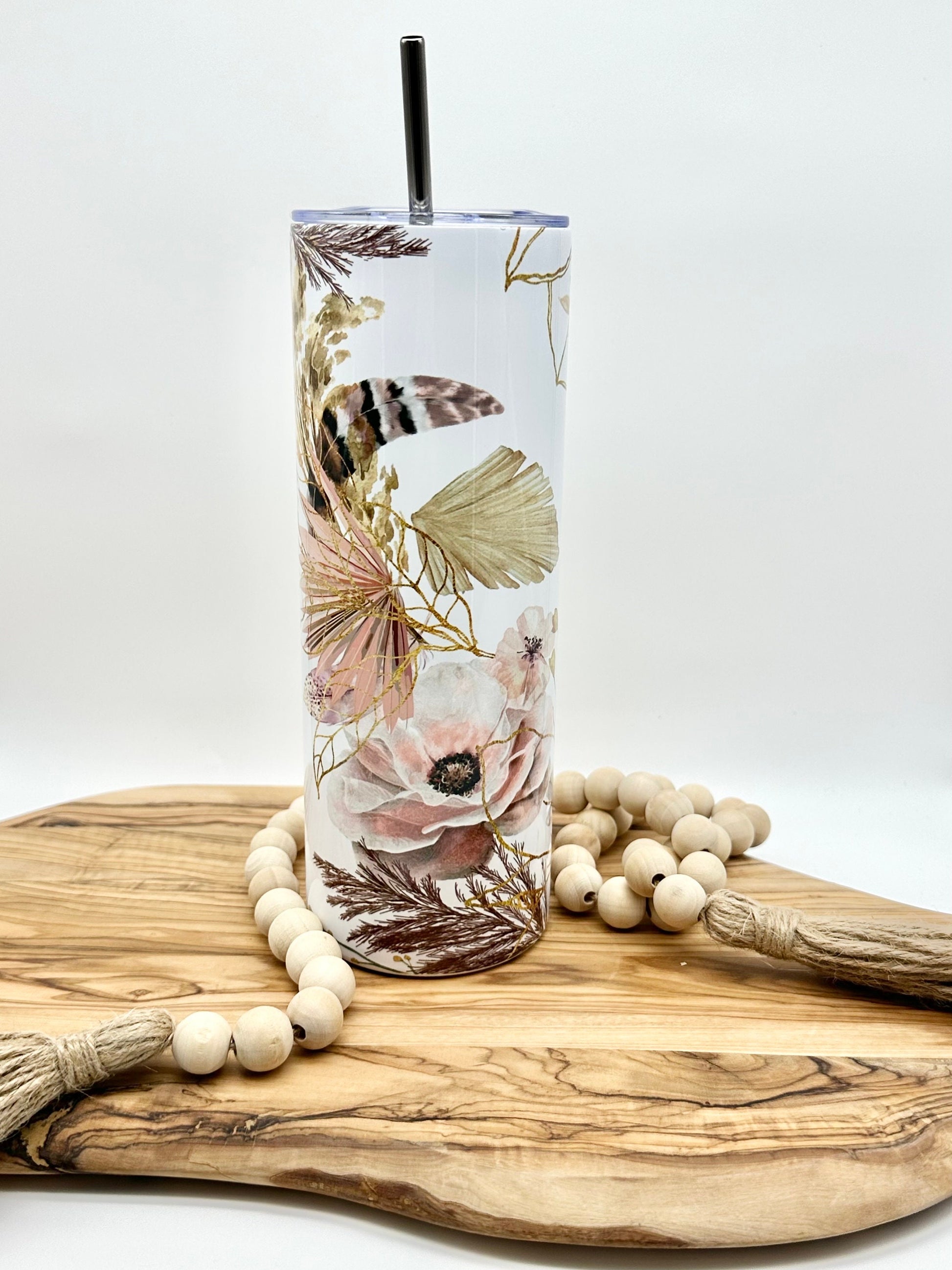 20oz Pink Floral Tumbler with Lid and Straw - Insulated Stainless Steel