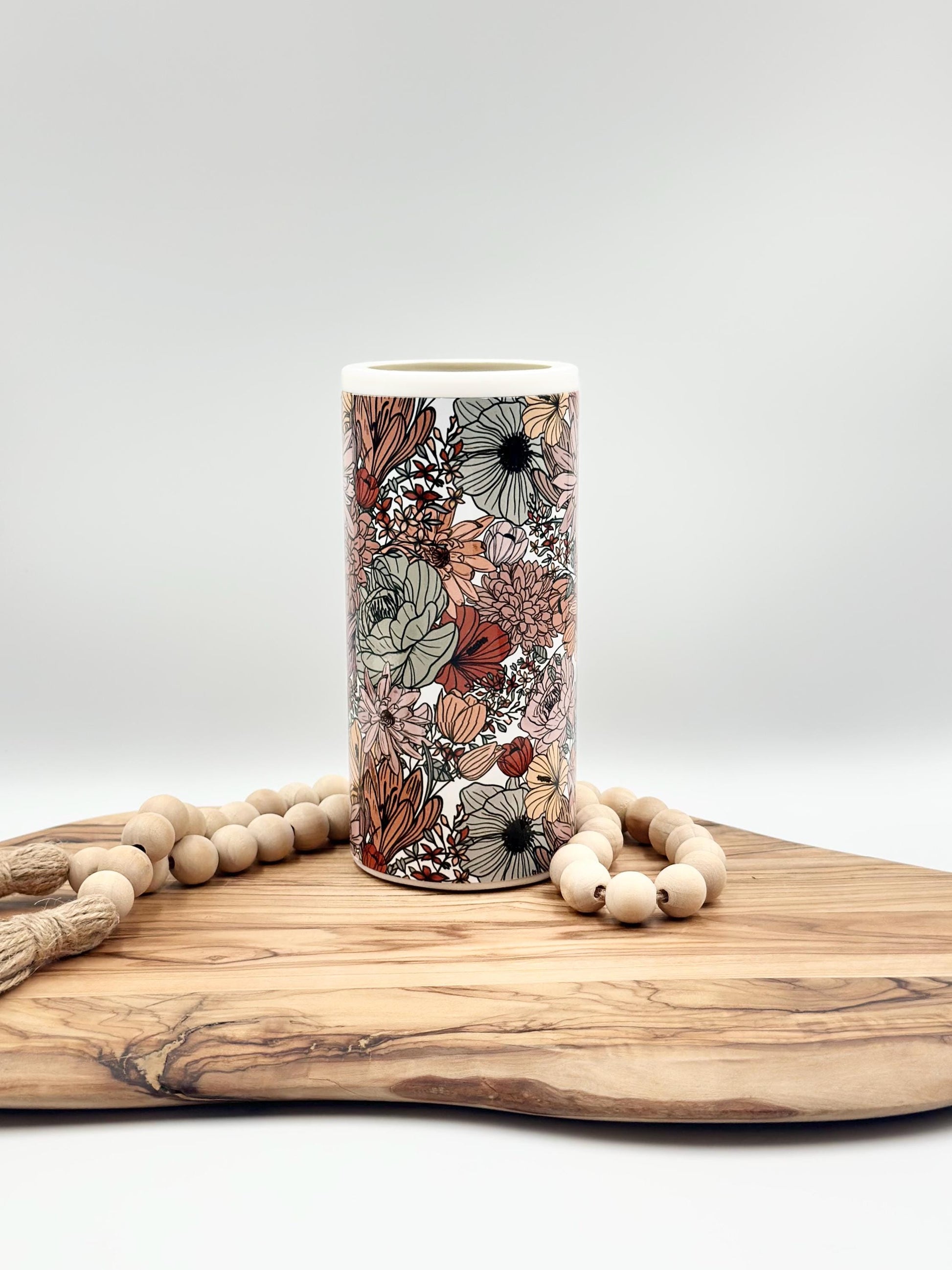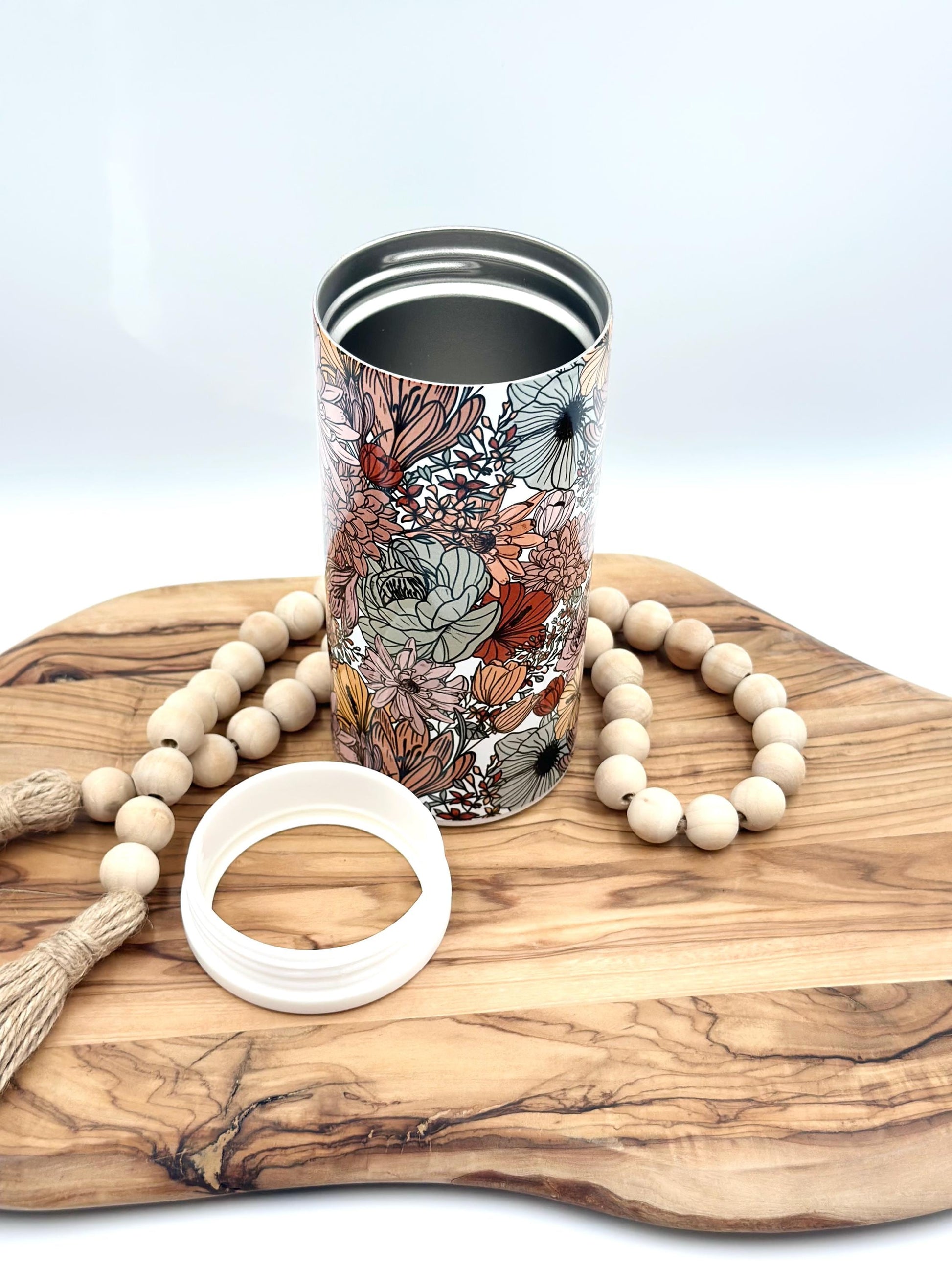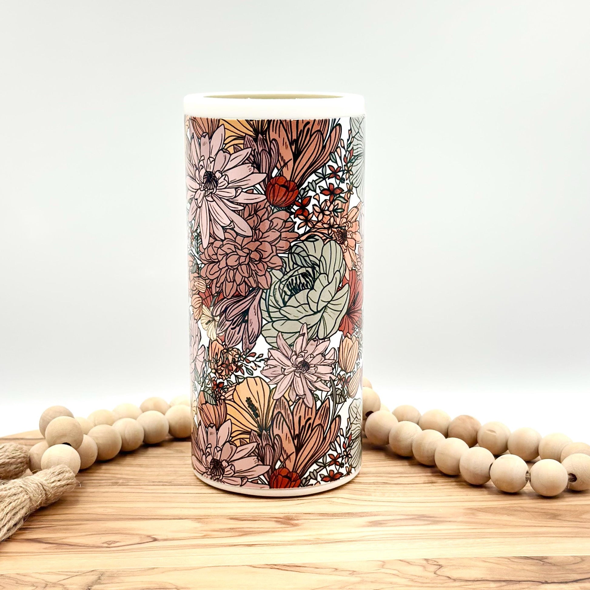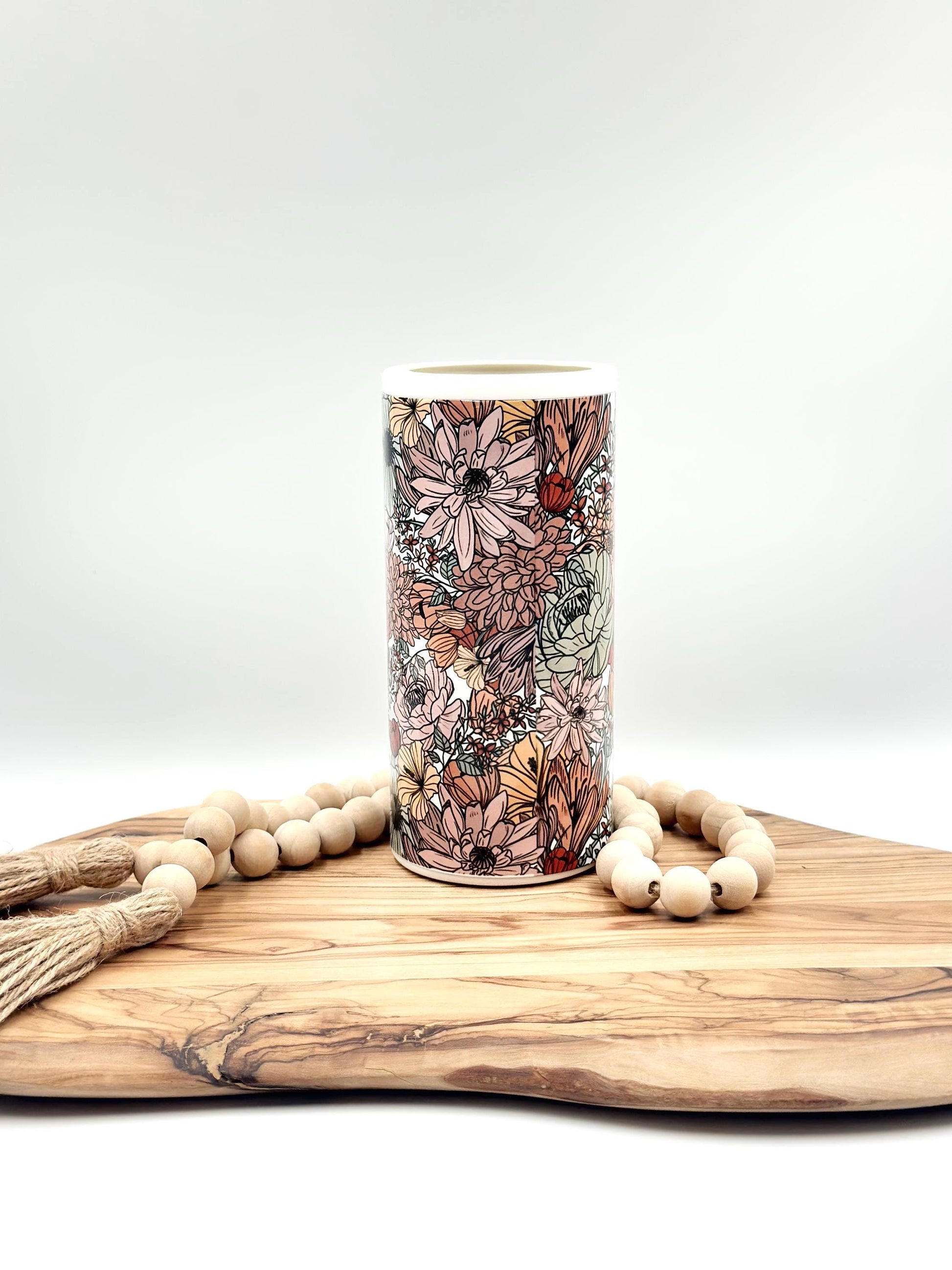 Slim Floral Can Cooler - Stainless Steel Insulated Cozie for 12oz Cans and Bottles