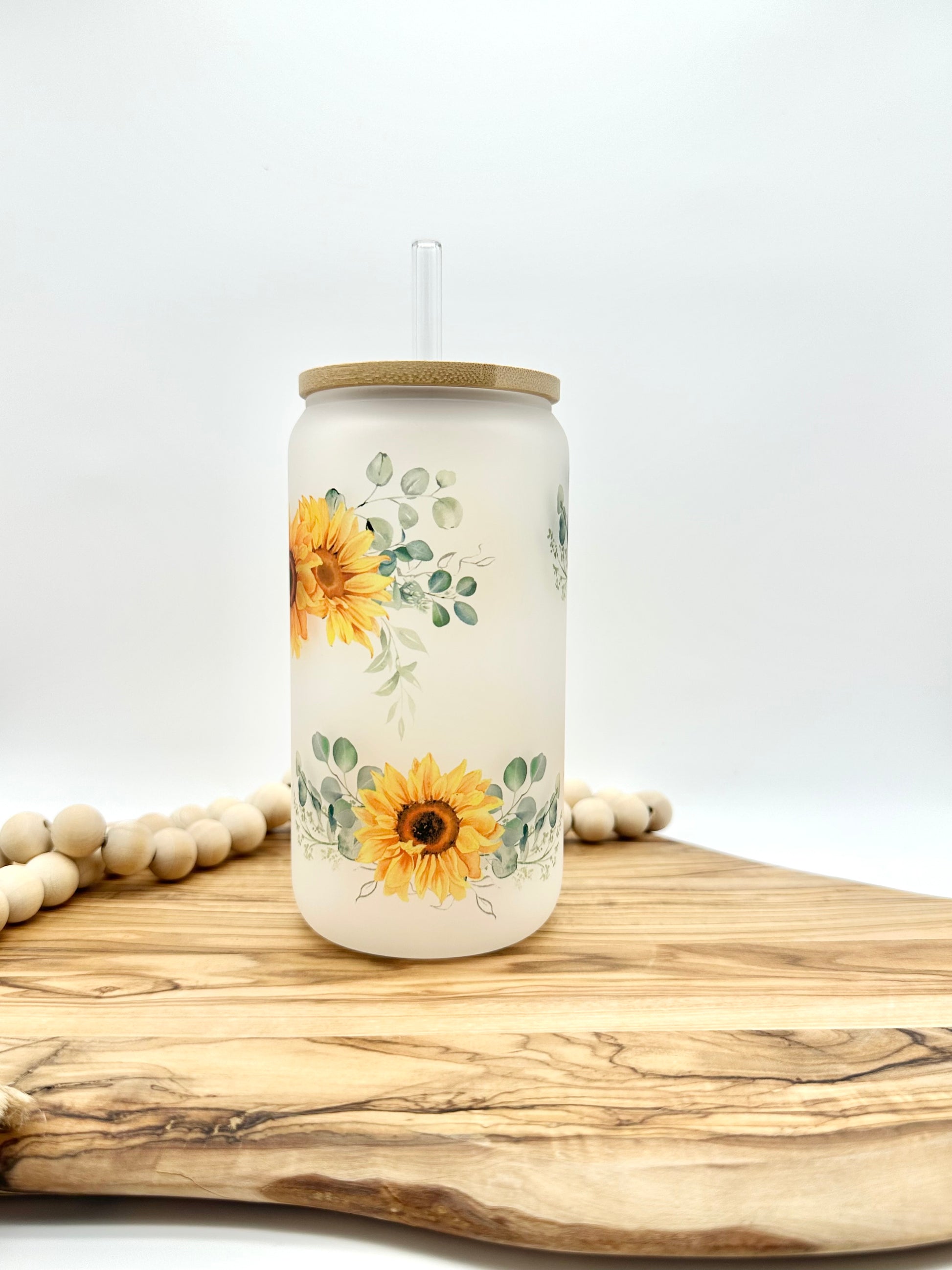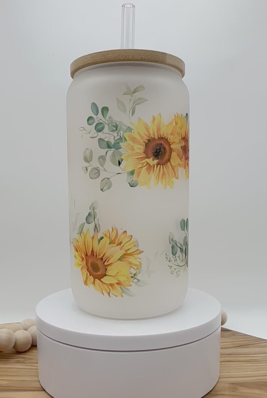 This sunflower glass cup is a perfect way to enjoy iced coffee or any of your other favorite cold beverages. The frosted glass gives a unique and elegant touch, while the floral design adds a touch of natural beauty to your drinkware collection. The bamboo lid and straw make it easy to take your drink on the go, and they're eco-friendly too!